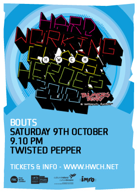 So Bouts are playing Twisted Pepper as part of Hard Working Class Heroes on Saturday October 9th at 9.10pm. Baring a disaster or a miracle it will be their live debut.
